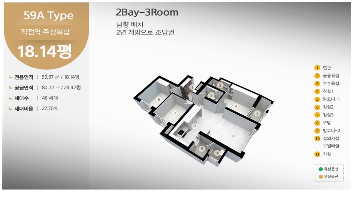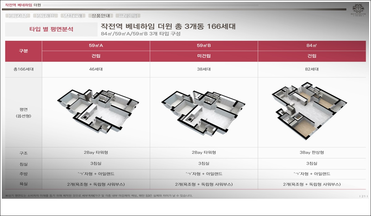 작전역 베네하임 더윈 아파트 공급(供給)되는 모든 세대(世代)는 방(房)이 3개(個)로 구성(構成)되어 있으며