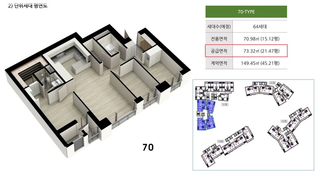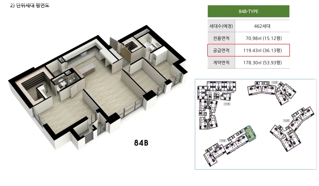 근린상업지역(近隣商業地域)이자 준거주(準居住), 제(第)3종보통거주(種普通居住), 역사문화환경보존지역(歷史文化環境保存地域), 상대보호구역(相對保護區域)으로 지정(指定)된 지구(地球)입니다. 공동주택(共同住宅)과 여러 업무(業務) 및 판매(販賣), 근린일상시설(近隣日常施設)의 용도(用途)로 지어질 구상(構想)인데요. 지하(地下) 6F, 지상(地上) 최소(最小) 19F에서 최대(最大) 39F 짜리 4개동(個棟)으로, 총(總) 689세대(世代)로 계획(計劃)되었습니다. 주차(駐車) 가능한(可能限) 수(數)는 전체(全體) 1,010대(臺)인데요. 이 중(中)에서 808대(臺)를 공동주택(共同住宅)에 부여(附與)할 기획(企劃)이며, 나머지 202대(臺)를 판매(販賣) 및 각종(各種) 부대(附帶) 시설(施設)에 부여(附與)할 계획(計劃)입니다.라이프스타일을 반영(反映)한 Bay 짜임를 구성(構成)하였는데요. 세대별(世代別)로 44type에서 시작(始作)하여 49, 70, 84A, 84B type의 유형(類型)으로 지어질 것이라고 하는데요. 이중(二重) 84A와 84B type이 제일(第一) 높은 비율(比率)을 차지하고 있는 상황(狀況)입니다.
