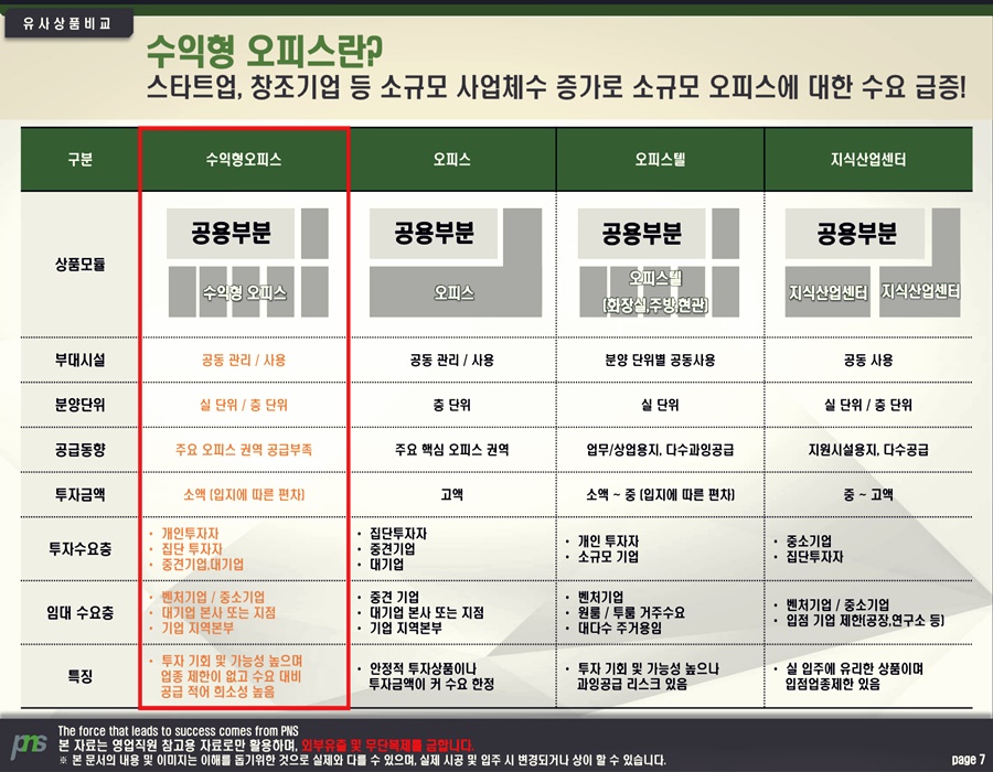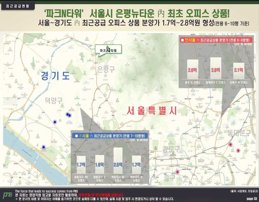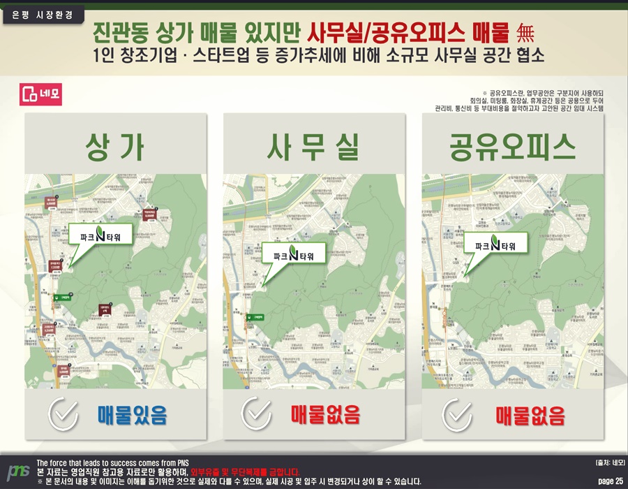 은평뉴타운 파크n타워 높은 효율성(效率性)도 경쟁력(競爭力)이다. 섹션오피스는 평균(平均) 전용률(專用率)이 50% 정도(程度)로, 화장실(化粧室) 혹은(或은) 주방(廚房) 등(等) 업무(業務)에 불필요(不必要)한 공간(空間)이 있는 오피스텔보다 실사용(實使用) 공간(空間)이 넓다. 더불어 내부(內部) 마감설비(設備)가 많지 않아 오피스텔보다 비교적(比較的) 적은 돈으로 투자(投資)가 가능(可能)하다.