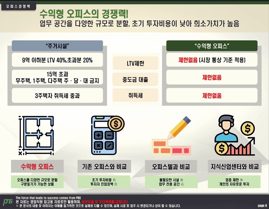 최근(最近) 은평뉴타운 파크n타워 섹션오피스의 가치(價値)는 더욱 높아지고 있다. 지난해 7월(月) 행정안전부(行政安全部)는 주거용(住居用) 오피스텔을 주택(住宅) 수(數)에 포함(包含)시키는 내용(內容)이 담긴 지방세법(地方稅法) 개정안(改正案)이 통과(通過)됐다고 밝혔다. 이에 따라 주택(住宅)이 있는 자(者)가 오피스텔을 매입(買入)하게 되면 최대(最大) 12%의 세금(稅金)이 가중(加重)된다. 반면(反面), 오피스는 이러한 규제(規制)에서 벗어나 있어 다방면(多方面)에서 수월하게 접근(接近)할 수 있다.