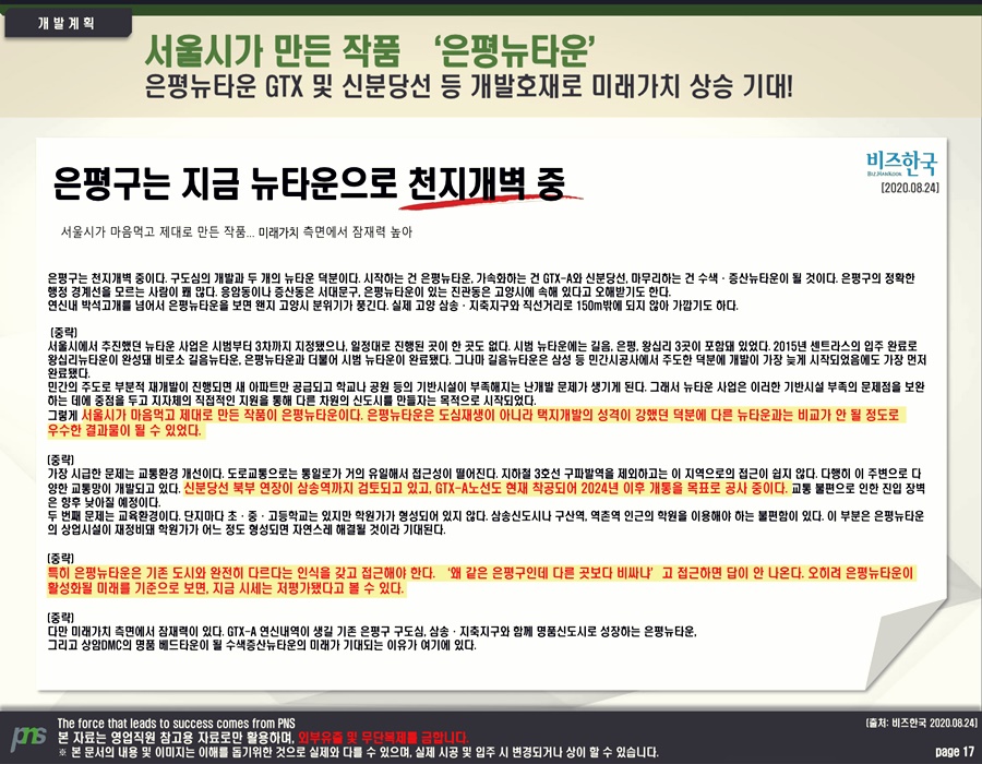 ‘은평뉴타운 파크n타워’가 들어서는 은평뉴타운은 서울에서 저평가(低評價)된 지역(地域) 중(中) 하나다. 그러나 수색역세권(搜索驛勢圈) 개발(開發)을 비롯해 재건축(再建築)·재개발(再開發)이 동시다발적(同時多發的)으로 진행(進行)되면서 반전(反轉)의 계기(契機)를 마련했다. 이와 함께 △gtx-a 노선(路線) 연신내역(2023년(年) 예정(豫定)) △서부선(西部線) 경전철(輕電鐵)(2028년(年) 예정(豫定)) △고양선(高陽線) 경전철(輕電鐵)(2028년(年) 예정(豫定)) △신분당선(新盆唐線) 서북부(西北部) 연장(延長)(예정(豫定)) 등(等)의 교통호재(交通好材)는 지가(地價) 상승(上昇)을 이끌었다. 최근(最近)에는 은평구(恩平區) 소재(所在) 아파트 매매가(賣買價)가 15억(億) 원을 돌파(突破)할 정도(程度)로 상승세(上昇勢)가 뚜렷하다.