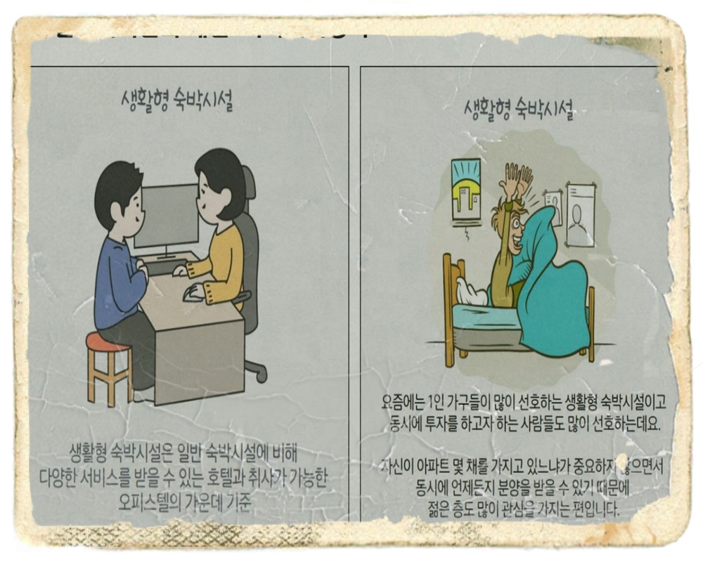 특히(特히) 을지로(乙支路) CBD(중심업무지구(中心業務地區)), 강남(江南) 등(等) 서울 주요(主要) 도심권(都心圈)에 공급(供給)되는 생활숙박시설(生活宿泊施設)은 서비스를 호텔급(級)으로 높이고 '집'에 가까운 편안(便安)한 설계(設計)’로 1~2인(人) 가구(家口)의 영앤리치 수요(需要)가 몰리고 있다.