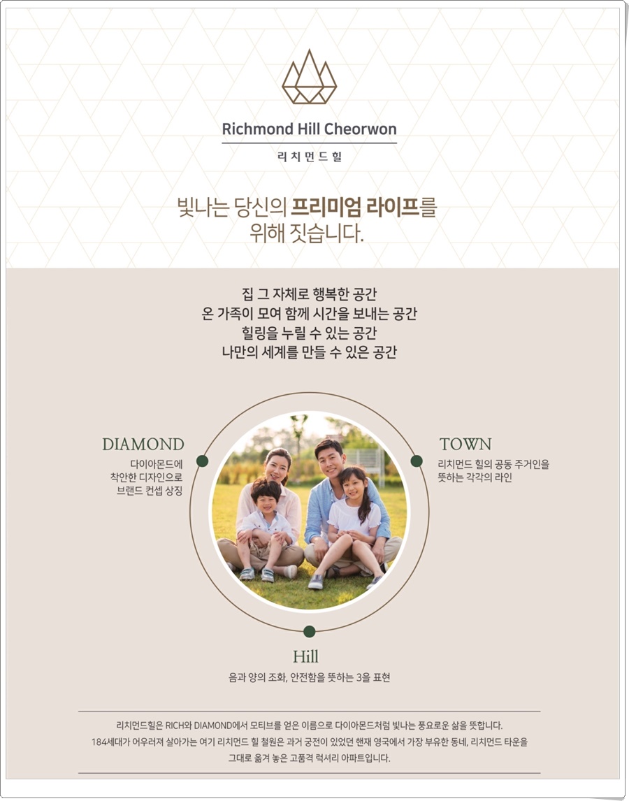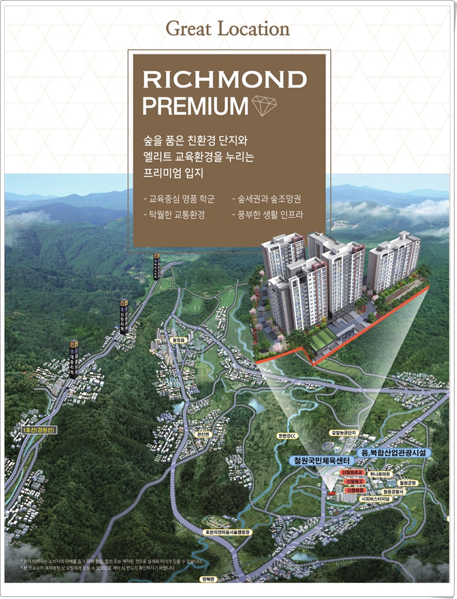 태원건설산업(太原建設産業)에 따르면 철원 리치먼드힐은 강원도(江原道) 철원군(鐵原郡) 갈말읍 지포리 227번지(番地) 일원(一圓) 9,861.00제(題)*곱*미(美)*터에 조(兆)/성(性)/이 되는 공동주택단(共同住宅團)*지로 철원군(鐵原郡)에 12년(年)만의 신규공급(新規供給)되는 일반(一般)분*양(量) A*P*T로 조성(造成)된다고 한답니다.