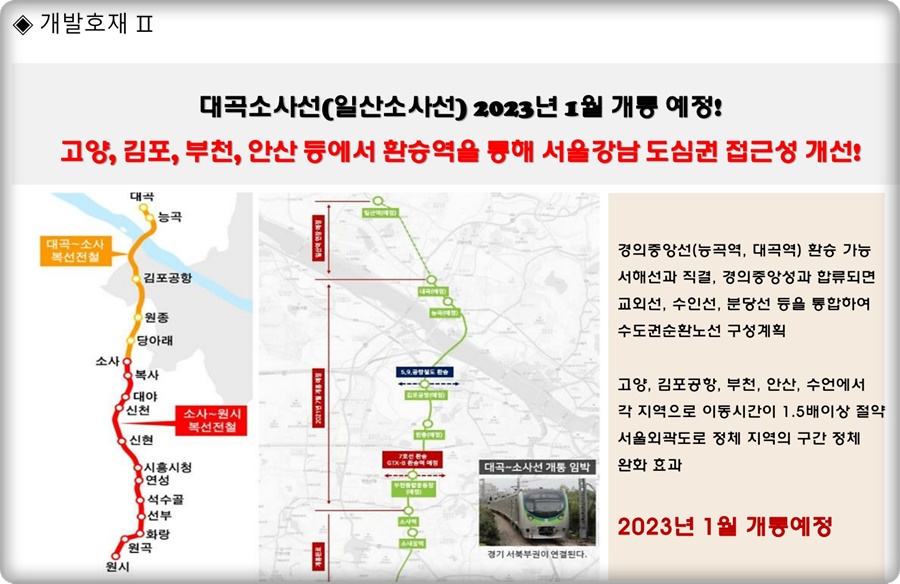 식사역 두산위브 더시티 신개념(新槪念) 교통수단(交通手段)인 트램 도입(導入)도 계획(計劃)돼 있으며, 식사(食事)트램역(役)이 확정(確定)됐다. 이밖에 지하철(地下鐵) 3호선(號線) 연장선(延長線)이 2023년(年) 기공(氣功) 계획(計劃)이며, 대곡소사선(掃射線)(일산소사선(一山掃射線))이 2023년(年)에 완성(完成)될 계획(計劃)이다고 한답니다. 고양(高陽), 김포(金浦), 부천(富川), 안산(安山) 등(等) 환승역(換乘驛)을 통(桶)*해 서울 강남(江南) 도심권(都心圈)의 접근성(接近性)이 큰 폭(幅)으로 향상(向上)될 예상(豫想)이다고 한답니다.