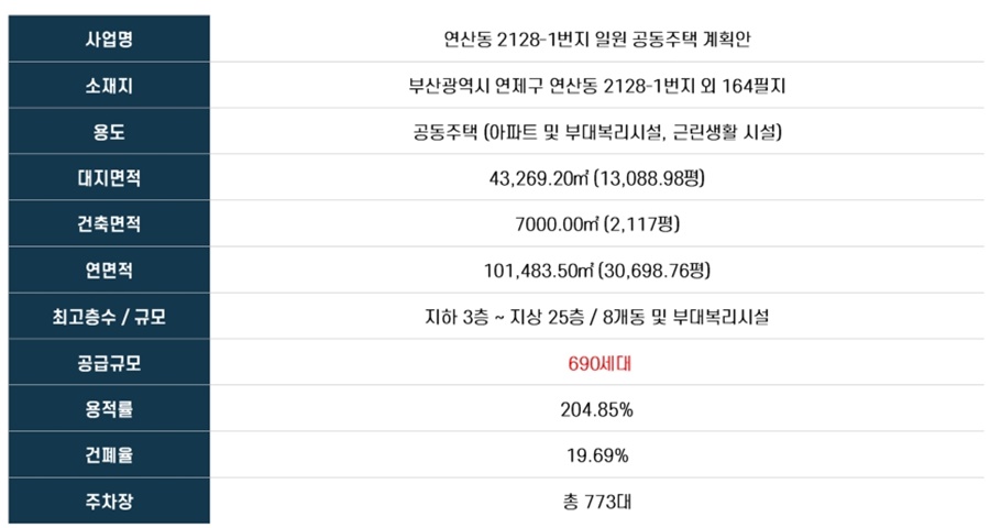 연산 두산위브 연산 포레 1차 아파트 알아보기 부산광역시(釜山廣域市) 연제구 연산동 2128-1번지(番地) 외(外) 164필지(筆地) 일대(一帶)에 구성(構成)될 계획(計劃)인 당(黨) 사업지(事業地)는 지하(地下) 3층(層)에서 지상(地上) 25층(層) 범위(範圍)의 공동주택(共同住宅) 8개(個) 동(棟)에 총(總) 690세대(世代) 및 부대(部隊) 복리(福利) 시설(施設)로 구성(構成)되며, 대지면적(垈地面積) 13,088평(坪), 연면적(延面積) 30,698평(坪), 주차대수(駐車臺數) 773대(代) 수준(水準)의 사업(事業) 범위(範圍)를 기획(企劃)하고 있습니다.