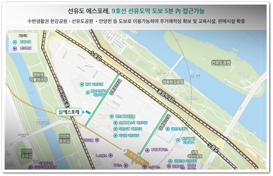 그리고 officetel은 무엇보다도 교통(交通) 인프라가 충족(充足)되어야 하는데요. 그런 점(點)에서도 선유 에스포레 선유도역(仙遊島驛) 3room officetel은 영등포구(永登浦區) 최서측(署側)에 자리함으로써 올림픽대로(大路)와 서부간선도로(西部幹線道路), 강변북로 등(等)의 여러 서울의 간선도로망(幹線道路網)을 쉽게 사용(使用)할 수 있는 입지(立地)인데요. 광역교통(廣域交通)의 시발점(始發點)이라고도 할 수 있기 때문에 자차(磁差)를 사용(使用)하신다면 인기(人氣)할 수 밖에 없는 곳입니다. 그렇기에 교통(交通)이 밀집(密集)되어 출퇴근(出退勤) time에 마비(痲?)되는 일이 잦은 지역(地域)이기도 했는데요.